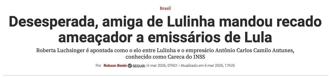 Se o nosso dinheiro já foi roubado, o que nos resta é ver o ladrão se ferrando. Por isso, a gente sente aquele calorzinho no coração lendo manchetes como esta: Um sorriso vai surgindo espontaneamente quando o Careca do INSS começa a pensar numa delação. O mundo perfeito seria o Vorcaro contar, ao vivo e em rede nacional, os detalhes mais obscenos das festinhas frequentadas por gente graúda de Brasília. A gente sabe que ninguém vai ser punido. A gente sabe que, daqui a pouco, vão arrumar uma tese jurídica exdrúxula para anular processos e devolver a bandidagem para o seu habitat: Brasília. Então, que pelos menos eles se digladiem, se caguetem e nos presenteiem com, pelo menos, a execração pública dessa gentalha escrota. Assim seja! Amém. Atualmente, você é um assinante gratuito de Não É Imprensa. Para uma experiência completa, atualize a sua assinatura. |