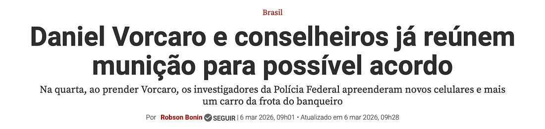 A nota oficial do STF diz que as mensagens de Vorcaro não eram para Xandão. Mas nem o STF nem o próprio Xandão tentaram explicar para o distinto público porque o banqueiro aparvalhado contratou a mulher do ministro por mais de 130 milhões de reais. Também não explicaram nada sobre as toffoladas no empreendimento Tayayá. E nem tocam no assunto das festinhas privês, com charutos, vinhos caros e lindas garotas da vida importadas do leste europeu... Assine Não É Imprensa para desbloquear o restante.Torne-se um assinante pagante de Não É Imprensa para ter acesso a esta publicação e outros conteúdos exclusivos para assinantes. Uma assinatura oferece a você: