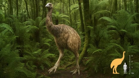 | De volta à vida. A Colossal Biosciences, empresa que busca trazer de volta animais extintos há milhares de anos, anunciou um novo projeto de desextinção: a moa gigante — ave extinta há quase 600 anos. | Caso não conheça… Com mais de três metros de altura, a moa gigante é a ave mais alta que se tem registro. O herbívoro sem asas vivia na Nova Zelândia, alimentando-se de árvores e arbustos, até ser extinto com a chegada dos humanos.