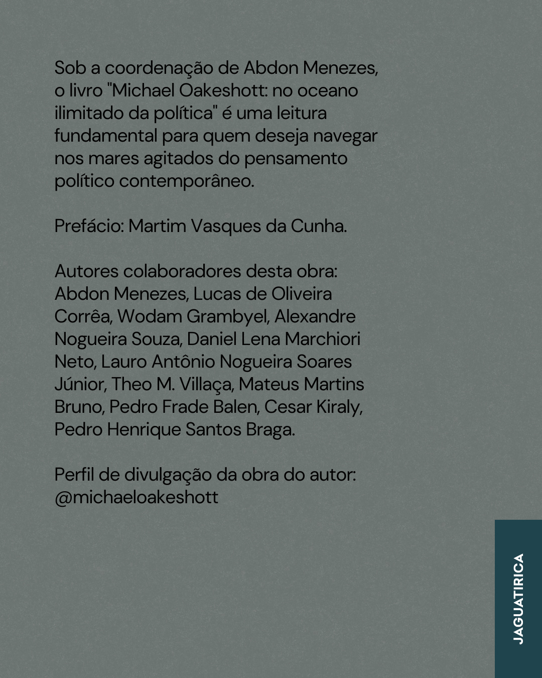 A conversa em vídeo acima é sobre o livro Michael Oakeshott No Oceano Ilimitado da Política, publicado pela Editora Jaguatirica, que foi lançado recentemente nas livrarias. Organizada por Abdon Menezes, que me convidou gentilmente para escrever o prefácio, a obra tem artigos de diversos scholars brasileiros (a lista vai logo abaixo) que, nos últimos tempos, se debruçaram sobre os escritos do grande filósofo inglês. Para comprar o livro, é só ir neste link - ou neste aqui. Quem quiser colaborar com o meu trabalho, além do valor da assinatura desta newsletter pessoal, pode me ajudar por meio do pix: martim.vasques@gmail.comE quem quiser apertar o botão abaixo só para fazer a minha felicidade - e manter essa newsletter de modo mais profissional, be my guest: You're currently a free subscriber to Presto. For the full experience, upgrade your subscription. |