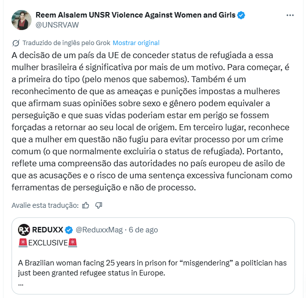 #ARefugiadaA ativista feminista condenada por dizer que Erika Hilton “é homem”, foi reconhecida como Refugiada Política na EuropaHá alguns meses, a Suprema Corte britânica, em pleno 2025, teve de legitimar a biologia. Mulher é mulher desde que nasce. Depois da “decisão”, a Anistia Internacional discordou dos juízes (e da biologia?). Alertou para consequências preocupantes e afirmou que é negativo criar uma distinção entre pessoas trans e não trans com base no sexo biológico. “Não trans”? Quem seriam as pessoas “não trans”? A decisão do tribunal, obviamente, não criou uma distinção entre homens e mulheres. Assim como Newton não criou a gravidade. A decisão esclareceu que não é possível criar uma igualdade onde ela não existe. Segundo os juízes: “Os problemas práticos que surgem sob uma abordagem de sexo certificado são indicadores claros de que essa interpretação não está correta.” E os problemas são inúmeros. O principal diz respeito aos direitos mais básicos das mulheres. A escritora J.K. Rowling é, até hoje, perseguida e hostilizada de forma agressiva por ter defendido seu próprio direito de não chamar um trans de mulher. Na época em que fez esse post, o tom autoritário que os próprios intérpretes e fãs de Harry Potter usaram contra a autora beirou uma espécie de surto psicótico. Alguns fãs se mostraram tão desesperados que queimaram seus livros, outros procuraram formas de se livrar de suas tatuagens que se referiam aos personagens. A autora nunca negou a dignidade das pessoas trans. Ela só não sucumbiu à imposição que a obrigaria a chamar de mulher, um homem que se sente e quer viver como se fosse mulher. Ao contrário do Supremo britânico, o nosso STF conseguiu complicar ainda mais essas relações. Porque quando o nosso transcendente STF legisla, coisas inéditas, nunca antes vistas na história do país, acontecem. Em 2019, os ministros entenderam que poderiam estender a aplicação da Lei 7.716/1989 (Lei do Racismo) para legislar sobre homofobia e transfobia. Esticaram não só conceitos, mas a nova função que tiraram de sua cartola mágica: se os parlamentares não legislam, eles estão autorizados a fazê-lo para suprir a lacuna. Como se não legislar também não fosse uma escolha legítima para os parlamentares que só os eleitores poderiam avaliar. Mas, em tempos de autodeclaração impositiva, os ministros do Supremo se autodeclararam legisladores. Com isso, criou-se, na prática, um crime que não existia no texto legal, classificando condutas consideradas “transfóbicas” como racismo. Essa interpretação não trouxe critérios objetivos claros para diferenciar crítica de conduta criminosa, deixando amplo espaço para subjetividade. O Ministério Público pode aceitar a declaração de quem se sente ofendido como prova inicial suficiente para abrir investigação, com base nessa interpretação do STF que equipara transfobia a racismo. E como o crime é classificado como inafiançável, a acusação por si só pode gerar medidas cautelares severas, como bloqueio de redes sociais e até prisão preventiva antes mesmo do julgamento. Na prática, tudo parte de um processo autodeclarado: a pessoa define sua identidade de gênero, define que foi ofendida, e essa percepção subjetiva pode bastar para acionar a justiça com consequências graves antes de qualquer condenação. Um exemplo das consequências que a jurisprudência tirada da cartola suprema pode causar é o caso de Isabella Cêpa. Ela se tornou a primeira brasileira a solicitar refúgio político desde o fim da ditadura militar em 1985. O motivo do pedido é igualmente inédito. Em 2020, quando Erika Hilton venceu a eleição para a câmara de vereadores de São Paulo com ampla votação. Havia uma celebração por considerarem que era “a mulher mais votada do Brasil”. Isabella, que é feminista, publicou nas redes sociais sua surpresa e decepção ao descobrir que a “mulher mais votada” era, na verdade, um homem. Ela nem sabia de quem se tratava, mas a partir da mensagem, foi apresentada uma denúncia formal. Em 2022, Isabella foi chamada para depor pela polícia e tomou conhecimento da investigação que vasculhou suas redes sociais para encontrar qualquer menção “transfóbica”; em junho do mesmo ano, descobriu que estava formalmente acusada de cinco crimes de “racismo social”. Isabella passou a enfrentar a possibilidade de prisão. Em julho de 2024, ao tentar embarcar de Salvador para a Espanha, autoridades migratórias perceberam um alerta em seu passaporte, avaliaram o risco de perseguição política e orientaram que não retornasse ao Brasil, iniciando seu exílio. No início de 2025, o MPF decidiu pelo arquivamento do caso, pois considerou que a postagem não configura crime. Mas Erika Hilton entrou com reclamação no STF, alegando que o arquivamento contraria a jurisprudência da Corte. Em junho, com apoio da Agência da União Europeia para o Asilo, Isabella solicitou e recebeu formalmente o status de refugiada, tornando-se a primeira brasileira e a primeira mulher no mundo a obter proteção internacional por chamar um trans de homem. Paulo Gonet diz que a reclamação de Hilton não é cabível, mas a decisão final caberá a Gilmar Mendes. Isabella afirma que chegou a procurar proteção do Ministério da Mulher, mas Cida Gonçalves, que era ministra na época, não demonstrou preocupação e não indicou nenhum outro canal oficial para oferecer apoio. Quando o STF atropela procedimentos e limites e resolve legislar, casos inéditos, nunca antes vistos na história do país e até do mundo acontecem. Foi assim que o nosso tribunal virou o primeiro no mundo a legislar sozinho sobre controle de plataformas digitais e agora é o primeiro a causar uma situação como a de Isabella Cêpa. “Alphabet people”. Dave Chapelle elaborou a melhor teoria sobre gênero que existe. Atualmente, você é um assinante 