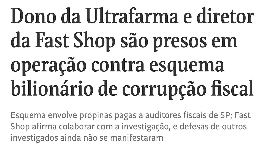 Aqui não se rouba milhões, como nos noutros países, e sim, bilhões. Conosco ninguém pode! 42 bilhões do Petrolão. 6.2 bilhões no INSS. Agora um bilhão no esquema do ICMS. Mas o país que é tetra no futebol, precisa subir no ranking da corrupção. Precisamos começar a roubar trilhões. Quem sabe em breve seremos tetra também na roubalheira. Pra frente, Biasil! Atualmente, você é um assinante gratuito de Não É Imprensa. Para uma experiência completa, atualize a sua assinatura. |
