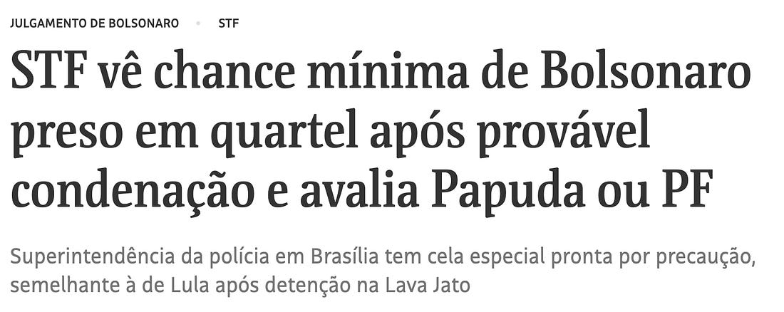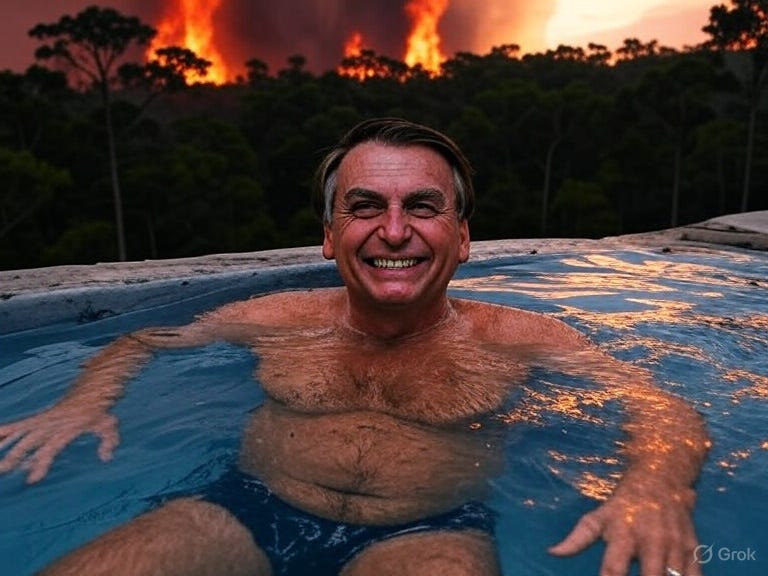 #BolsonaroNaPapuda?Com sangue nos olhos depois da Magnitsky, parece que os Supremíssimos não querem aliviar para o ex-presidente e mentecapto em exercícioTodo mundo sabe que o futuro de Bolsonaro estava sendo discutido nos calabouços de Brasília. Era previsto um acordão exclusivo para livrar a cara do Mentecapto. Ele se comprometeria a calar a boca e transferir sua popularidade ao candidato do Centrão, em troca de uma prisão domiciliar na confortável moradia bancada pelo cofrão do Valdemar – e uma promessa extra de indulto, caso o candidato do Centrão fosse eleito. Assim como declinou o convite do Mentecapto para ser vice em 2026, Xandão declinou novamente o convite para ser conivente com o acordão articulado por Michel Temer e Gilberto Kassab. “O cara não cede, não adianta!", confessou o Mentecapto a seu guru espiritual, Silas Malafaia, no áudio vazado pela PF na semana passada. Então, Bolso Filho teve de entrar em cena com a estratégia kamikaze criada por Figueiredo Filho, em que pretendiam “queimar a floresta inteira para pegar o bandido”. Eles falam em anistia geral e irrestrita da boca pra fora, mas querem apenas uma anistiazinha seletiva para livrar a cara de Bolsonaro e uma dúzia e meia de escroques fiéis à sua família. O problema é que, com sangue nos olhos depois da aplicação da Magnitsky, os supremíssimos já não querem mais aliviar para o ex-presidente e mentecapto em exercício. Mas como tudo no Brasil acaba em pizza, Bolso Filho e Figueiredo Neto terão a oportunidade para abrir mais uma rodada de negociações. Nenhum bandido será pego, mas o que sobrou dos patriotas do 8 de janeiro será queimado, definitivamente, junto com toda a floresta, numa nova tentativa de livrar a cara do Mentecapto e aquela dúzia e meia de escroques fiéis à sua família. Atualmente, você é um assinante gratuito de Não É Imprensa. Para uma experiência completa, atualize a sua assinatura. |
