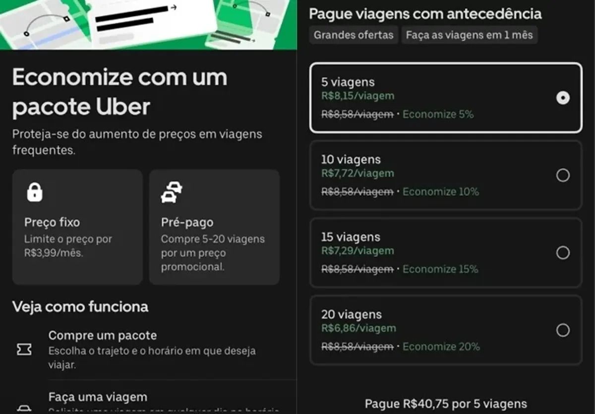 | 🚗 Corrida sob controle. Se o preço da Uber vive te surpreendendo, boas notícias: a empresa lançou dois recursos que prometem mais previsibilidade nos gastos. Chamados de Preço Fixo e Pré-Pago, os modos já estão disponíveis em cidades como Belo Horizonte, Curitiba, Recife e Salvador — e foram pensados para quem faz trajetos frequentes. | Como vai funcionar? No modo Preço Fixo, o usuário pode travar um valor para um trajeto específico dentro de uma faixa de horário. Por exemplo: do Aeroporto de Guarulhos até a Rodoviária do Tietê, entre 10h e 11h. Durante até 30 dias, esse percurso custará sempre o mesmo valor, desde que feito no horário combinado. Já no modo Pré-Pago, é possível comprar pacotes com 5, 10, 15 ou 20 corridas por um preço padronizado, fugindo do valor dinâmico. Enquanto isso… A Uber também divulgou que o Uber One — seu programa de assinatura — segue ganhando força. São 36 milhões de assinantes, um salto de 60% em um ano. O grupo responde por mais de um terço das reservas e gera, em média, 3x mais lucro que os demais usuários.