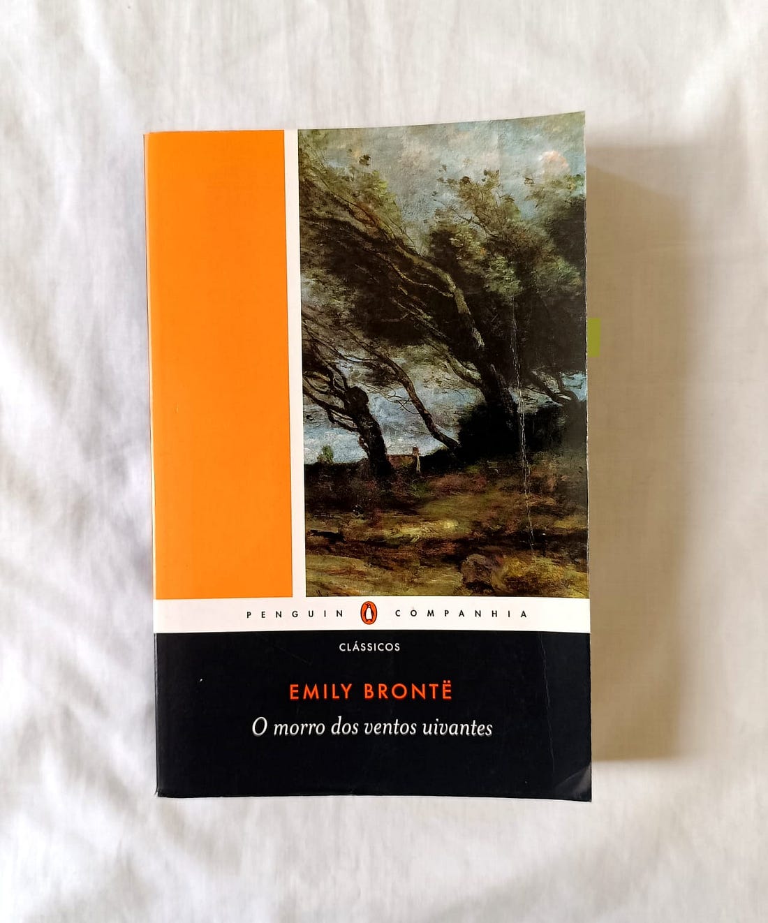 A primeira edição que tive contato com O morro dos ventos uivantes foi justamente essa: capa preta, dura e com ilustração dourada. Infelizmente aquela peça em especial se perdeu com o tempo, mas a obra permaneceu.