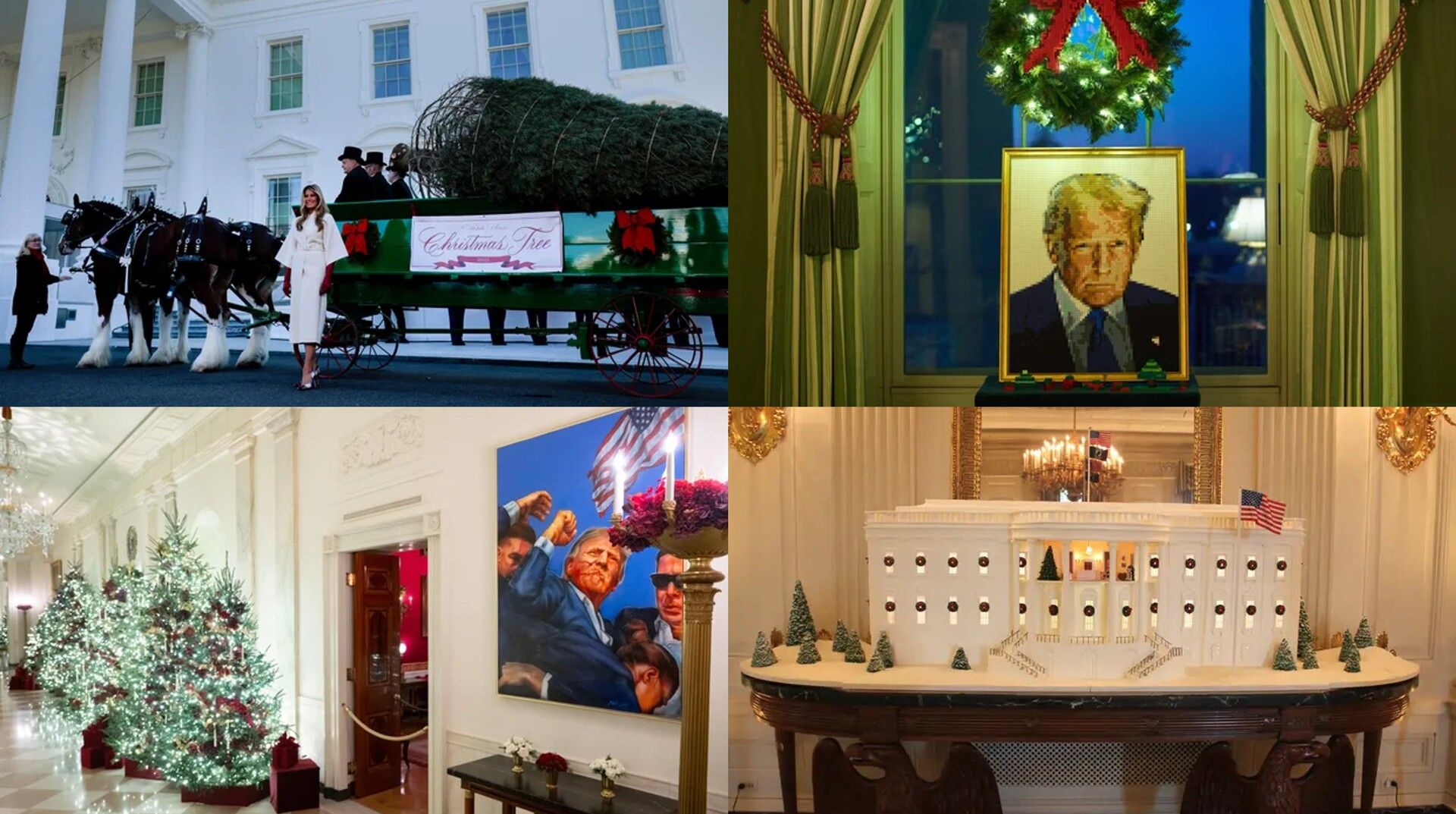 | 🎄 Seguindo a tradição, a primeira-dama Melania Trump apresentou a decoração de Natal da Casa Branca em 2025. Com o tema "Home Is Where the Heart Is", o projeto combina patriotismo com referências aos 250 anos dos Estados Unidos. Entre os destaques, estão a árvore oficial, um retrato de Trump em Lego e sua imagem com os punhos cerrados após um atentado, em julho. Veja mais fotos aqui. |
