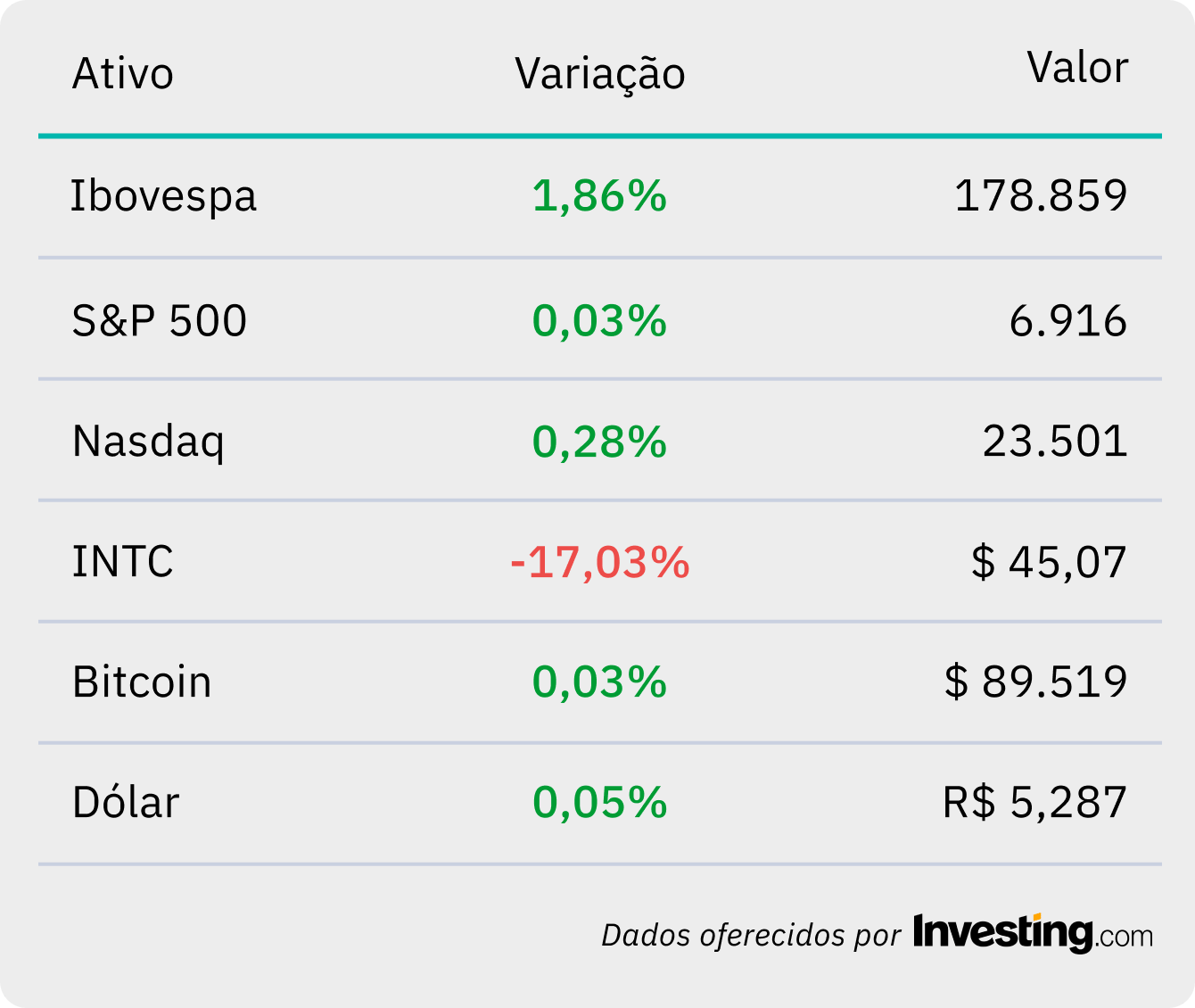 | Entre os destaques, a Petrobras (PETR4) subiu 4,35%, acompanhando a alta de 2,84% do petróleo Brent. 🛢️ | Já nos EUA, a Intel (INTC) despencou -17,03% após reportar prejuízo no 4º trimestre e divulgar projeções fracas para os próximos meses, abaixo das expectativas do mercado. | Extra: A corrida global pelo ouro levou o metal a superar os títulos dos EUA como principal reserva dos bancos centrais em 2025, algo inédito. Ontem (23), inclusive, o metal bateu um novo recorde, subindo 1,35%, a US$ 4.980 por onça-troy. |