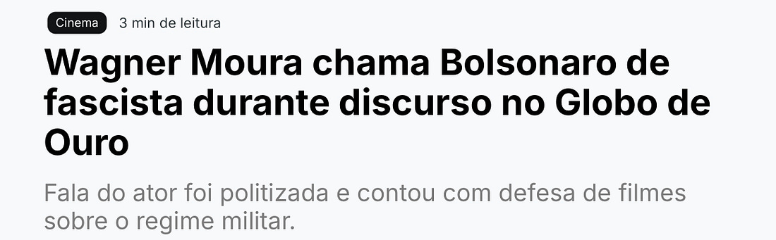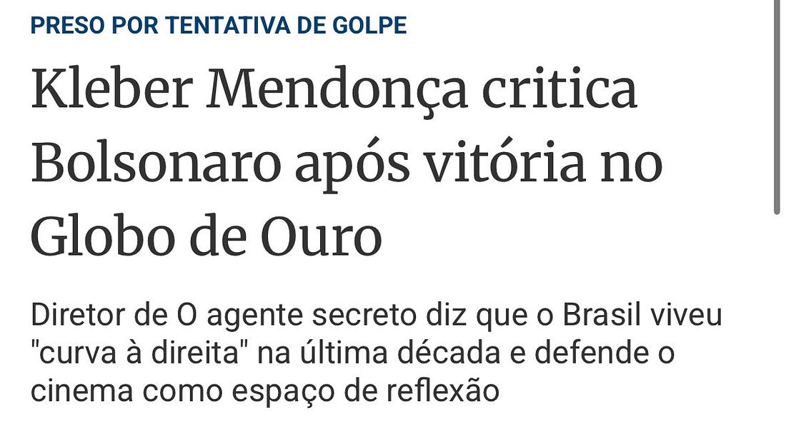 Antes que venham encher o meu saco: eu sou o primeiro a dizer que Jair Bolsonaro e sua prole são o que existe de pior no Brasil. Dito isso, vamos lá: Ontem, Wagner Moura e Kleber Mendonça usaram o Globo de Ouro para xingar o Bolsonaro. Uau, que coragem revolucionária. Sem medo nenhum falaram de um cara que já está preso. Os filhos desse merda e seus seguidores já são piada nacional, ridicularizados por toda mídia e por todos, 24 horas por dia. Será que, numa vitrine mundial dessas, vale a pena gastar saliva e tempo de discurso pra lembrar que esses lixos existem? Ou pior: tentar vendê-los como a “maior ameaça do momento”? Isso não é militância, é desconexão total da realidade. Essa gente vive numa bolha onde usam o Bicho-Papão para assustar as crianças na sala para que elas se comportem, enquanto, no quarto ao lado, o tio “bonzinho” abusa do sobrinho durante o almoço de família em paz. Enquanto denunciam o verme expurgado Bolsonaro, Lula em pleno exercício do poder apoia Maduro e o STF passa por cima do que quer no Brasil. Nesse mesmo Globo de Ouro, a gente vê a turminha ativista se dizendo pró-Venezuela. A desculpa é a de sempre: “direitos humanos”. Porém nesses 20 anos de ditadura chavista, nunca vi um desses iluminados pedir num palco desses para o Maduro parar de matar opositor ou libertar o seu povo. Mas, agora que o Maduro rodou, de repente eles aparecem preocupadíssimos com os “direitos humanos” na Venezuela. Ao invocar o fantasma do fascismo de um Bolsonaro encarcerado, será que não valeria dar uma cutucada no zumbi ditatorial socialista? Esse está bem vivo, atuante e transformou o nosso atual presidente Lula em cúmplice de uma ditadura que empilhou milhares de cadáveres de opositores. Temos regimes estatais coletivistas (fascistas portanto) triturando, torturando e destruindo vidas ao redor do mundo HOJE. Eu adoraria ver Wagner Moura, Mark Ruffalo e toda a nata de Hollywood discursando um dia contra a ditadura de Maduro ou contra o inferno que é a Coreia do Norte. Mas, para eles, o sofrimento real e presente causado pelos seus amigos ideológicos não é drama de cinema. Seus chefes não os autorizaram a ler esses scripts. Talvez todo ator de Hollywood acredite que ditaduras socialistas são aceitáveis porque, acima de tudo, eles são especialistas em ficção. Atualmente, você é um assinante gratuito de Não É Imprensa. Para uma experiência completa, atualize a sua assinatura. |