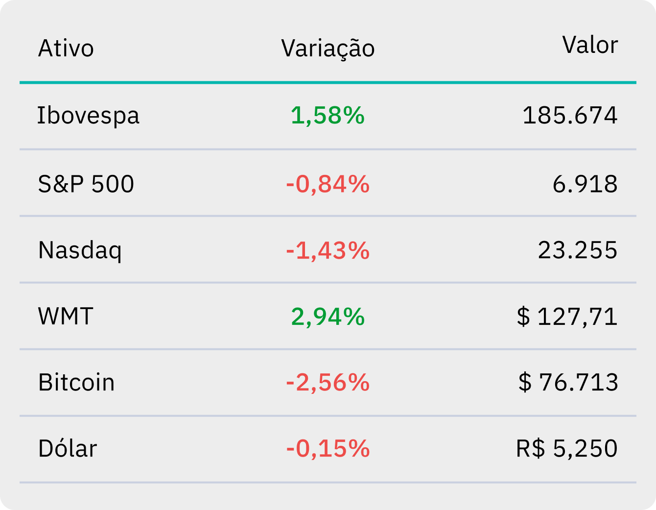| Entre as ações, o Walmart (WMT) subiu 2,94% e ultrapassou, pela primeira vez, o valor de mercado de US$ 1 trilhão – a única varejista a atingir a marca, impulsionada por avanços em inteligência artificial. 🛒 |