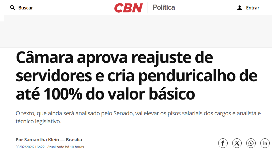 O pagador de impostos começa o ano devendo o IPVA, IPTU e a alma. Enquanto isso, os deputados começam o ano estendendo um tapete vermelho para eles mesmos e, em seguida, votando aumento salarial para os servidores. E não é qualquer aumento. O ‘reajuste’ consegue ser maior que o salário! No primeiro dia de expediente, após meses de férias bem remunerada, a Câmara aprovou um daqueles aumentos salariais aberrantes. E, para coroar a falta de senso da realidade, criaram mais um penduricalho. A “Gratificação de Desempenho e Alinhamento Estratégico” pode dobrar o valor do vencimento básico de técnicos e analistas. O servidor pode receber um adicional que chega a 100% do seu vencimento básico. Como ele não ficaria estrategicamente alinhado ao seu deputado? Considerando que Hugo Motta e sua assessoria são investigados por rachadinha, votar um aumento para os servidores pode ser um excelente plano de expansão de negócios. A população fica feliz em contribuir. Atualmente, você é um assinante gratuito de Não É Imprensa. Para uma experiência completa, atualize a sua assinatura. |