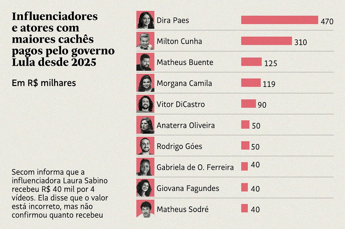 A velha política brasileira, que já comprava consciências no atacado, agora resolveu alugar carisma no varejo. A Folha informa que o governo Lula pagou mais de R$ 2 milhões em cachês para influenciadores e pseudo-celebridades venderem campanhas oficiais desde 2025. É a nova política propagandista do Sidônio Palmeira, que percebeu que as velhas lorotas publicitárias já não valem nada.