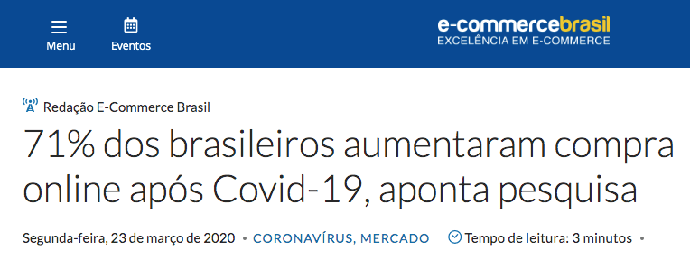 O Ecommerce tem apresentado números incríveis, totalmente fora da curva neste momento de crise mundial...