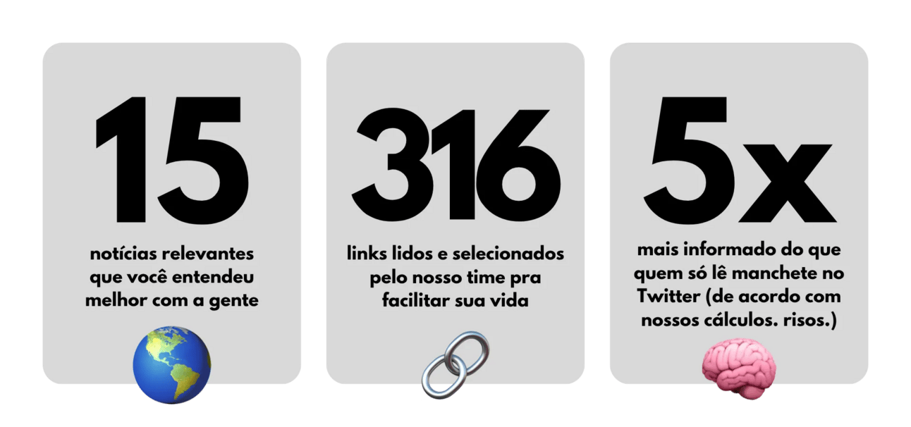 Economia, carreira, marketing, política, saúde… mais de 30 nomes que fazem barulho no mercado passaram pelo palco — todos eles, como você, leitores da nossa newsletter. |